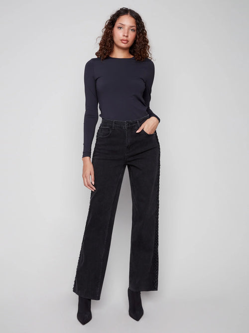 Braided Side Seam Jeans - Charcoal